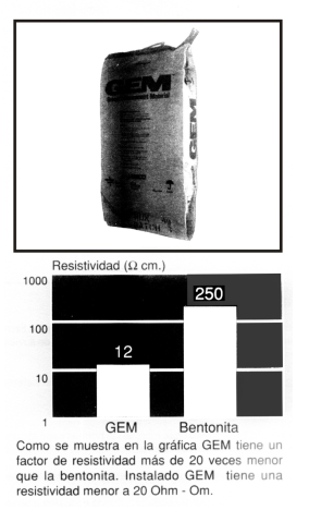 GEM Las bventajas de GEM reducen el costo de su instalacion. HE aquí porque: GME es efectivo: - Reduce la resistencia a tierra. - Mantiene constantemente la resistencia de por vida del sistema de tierra. -Funciona bien entodo tipo de terreno incluyendo periodos de sequia.